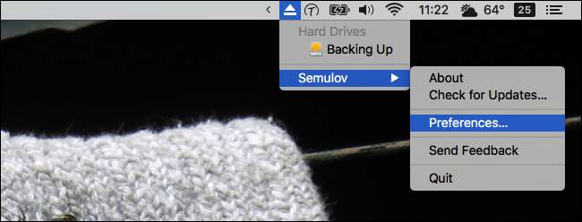 Esta aplicación realmente no necesitar ser más complicado que esto, y para la mayoría de los usuarios esto es suficiente. Pero hay un poco más de poder si profundiza en la configuración, que puede encontrar haciendo clic en el ícono de la barra de menú y dirigiéndose a Semulov> Preferencias.