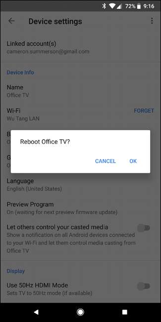 Para reiniciar el Chromecast, simplemente toque la opción "Reiniciar". Pan comido.