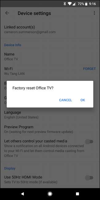 Cómo restablecer de fábrica su Chromecast directamente desde el dispositivo