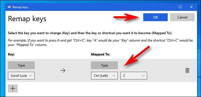 (En nuestro ejemplo, no habrá forma de usar la cerradura de desplazamiento a menos que remaptee otra tecla para realizar la función de bloqueo de desplazamiento original).