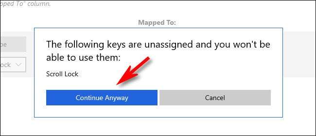 Si ve una advertencia de que una tecla se dejará sin asignar, haga clic en "Continuar de todos modos". Esto significa que no podrá acceder a la función original de la clave que acaba de remolverse.