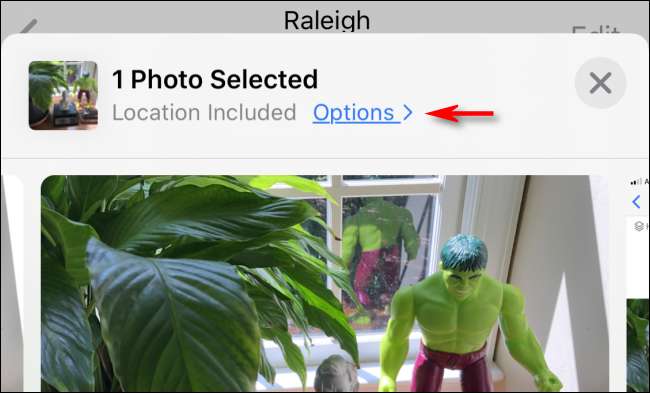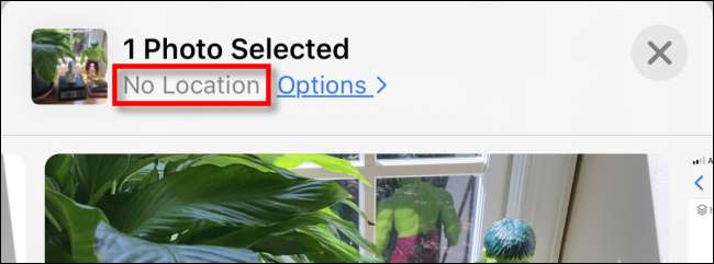Si ve "Ubicación incluida" junto a "Opciones", significa que los datos de ubicación están habilitados actualmente para esa foto o fotos. Sin embargo, estamos a punto de cambiar eso.
