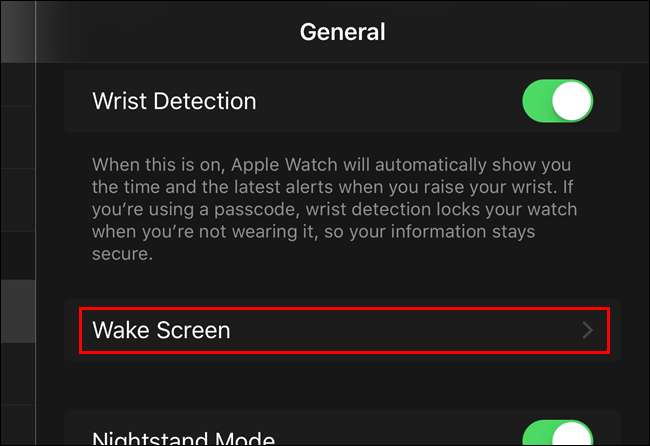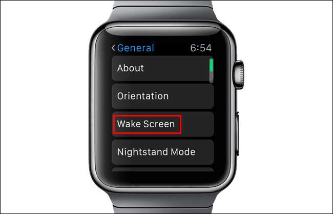 NOTA: La configuración del teléfono tiene un nombre diferente que la configuración del reloj. Se llama "Al levantar la muñeca" en el teléfono, pero es la misma configuración, y le mostraremos cómo cambiar la configuración del teléfono más adelante en este artículo.