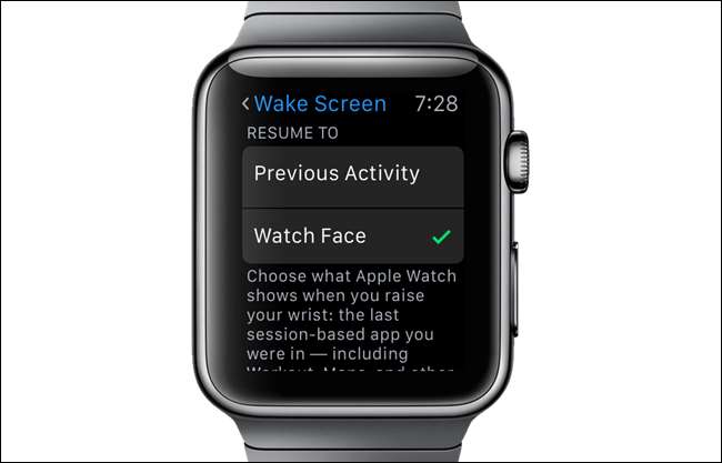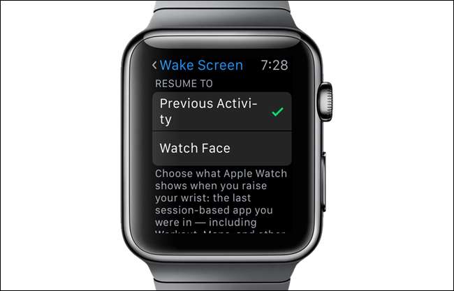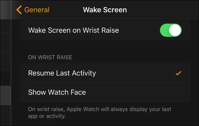 En "Al levantar la muñeca", en la pantalla "Activar pantalla", toque "Reanudar la última actividad".