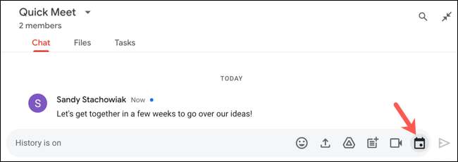 Si usted tiene la conversación a la vista, haga clic en el botón de evento de programación de calendario (que se parece a un icono de calendario) a la derecha del cuadro de mensaje.