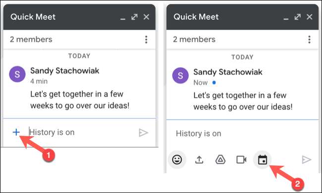 Si está utilizando el mini-ventana de chat, haga clic en el icono “+” para mostrar los botones de acción y haga clic en el botón Evento Horario Calendario que se ve como un icono de calendario.