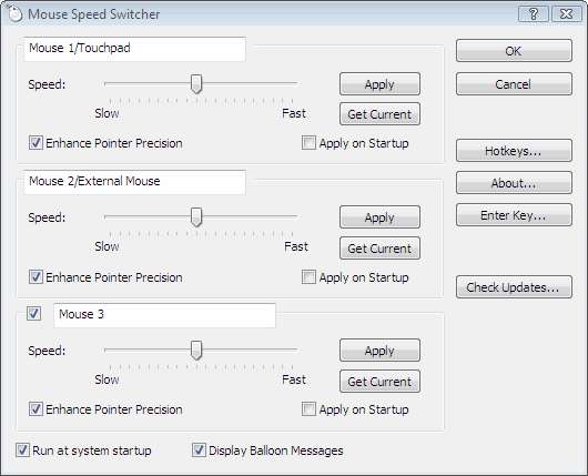 Mouse Speed Switcher también admite teclas de acceso rápido. Desafortunadamente para nosotros, es nagware; Obtendrá funciones completas y recordatorios de vez en cuando para registrarse / comprar una clave de producto, que cuesta 7,50 €.