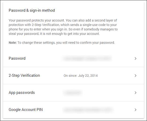 Lo primero es lo primero: debe tener la autenticación de dos factores (o "verificación en dos pasos", como suele llamarla Google) habilitada en su cuenta. Para hacer eso, dirígete a Página de inicio de sesión y seguridad de Google . Desde allí, puede habilitar la verificación en dos pasos en la sección "Iniciar sesión en Google".