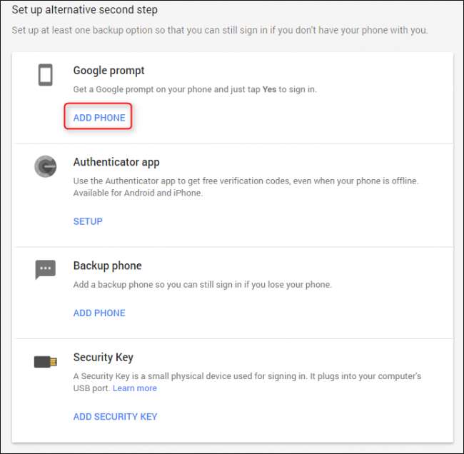 Esto también cambiará su segundo paso predeterminado a Google Prompt, lo que realmente tiene mucho sentido porque es mucho más fácil. Honestamente, desearía poder usar esta opción para cada cuenta en la que tengo habilitado 2FA. Vamos, Google, sigue adelante.