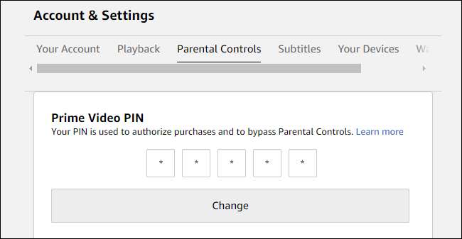Esta página le permite configurar los controles parentales de Prime Video. En la parte superior de la página, puede hacer clic en el botón "Cambiar" junto al PIN de Prime Video para establecer un PIN de cinco dígitos para Prime Video. Este PIN será necesario para autorizar la compra y el alquiler de videos principales, así como para omitir cualquier control parental que establezca aquí.