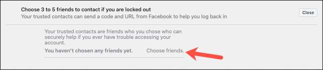 En el siguiente mensaje emergente, seleccione el botón "Elegir contactos de confianza".