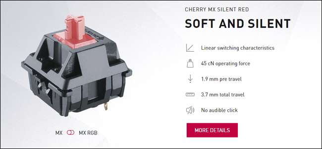 El video de arriba da un ejemplo sólido de la diferencia entre un interruptor Cherry MX Red estándar y la versión Red Silent.