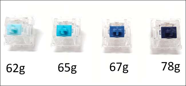 Si el precio de los interruptores te intimida, te recomiendo comprar algunos de diferentes fabricantes y probándolos en un probador de interruptores . Podrá comparar directamente su sonido y sensación, incluso probarlos con sus teclas, sin tener que invertir en una inversión de tres dígitos.