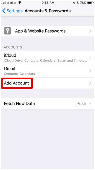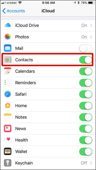 Abra el menú de iCloud, luego asegúrese de que Contactos esté activado. (Si no tiene una cuenta de iCloud, primero tendrá que tocar "Agregar cuenta", pero la mayoría de los usuarios probablemente ya tendrán una cuenta de iCloud configurada).