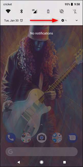 Independientemente del teléfono que estés usando, dale un tirón al tono de notificación y luego toca el ícono de engranaje para ir a Configuración. A partir de aquí, las cosas son ligeramente diferentes.