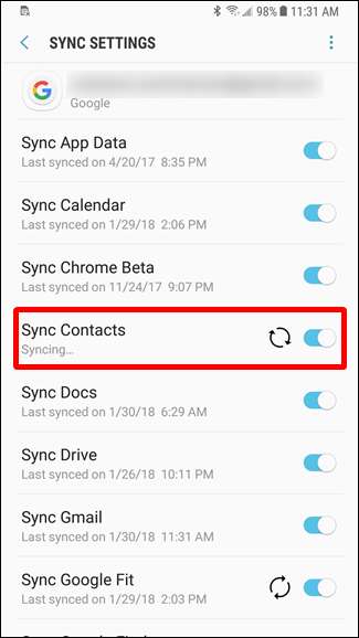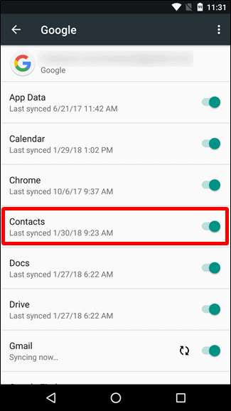 - Turrón Android: Vaya a Cuentas> Google> [Your Google Account] > Habilitar contactos