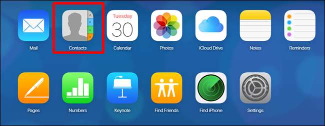 Primero, inicie sesión en tu cuenta de iCloud en la web, luego haga clic en Contactos.