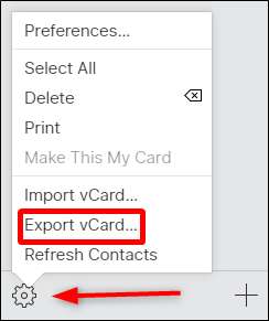 Desde allí, haga clic en el ícono de engranaje en la esquina inferior izquierda, luego elija Exportar vCard. Guarda el archivo.