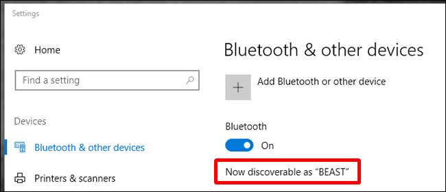 Primero, necesitará emparejar su PC con su teléfono. En Windows 10, primero abrirá el menú de Bluetooth y se asegurará de que el dispositivo sea detectable.