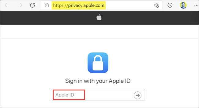 Primero, diríjase a privacidad.apple.com en un navegador web como Safari o Google Chrome. Inicia sesión con tu ID de Apple.