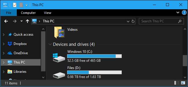 Aquí hay una toma del Explorador de archivos con el Piel de modo oscuro (nuestro favorito de los diversos temas oscuros en el sitio) aplicado a través de WindowBlinds: