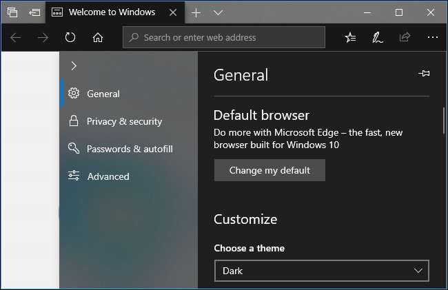 El navegador web Microsoft Edge incluido con Windows 10 también tiene un tema oscuro. Sin embargo, su opción de tema oscuro está completamente separada de la opción Modo oscuro en Configuración por alguna razón.