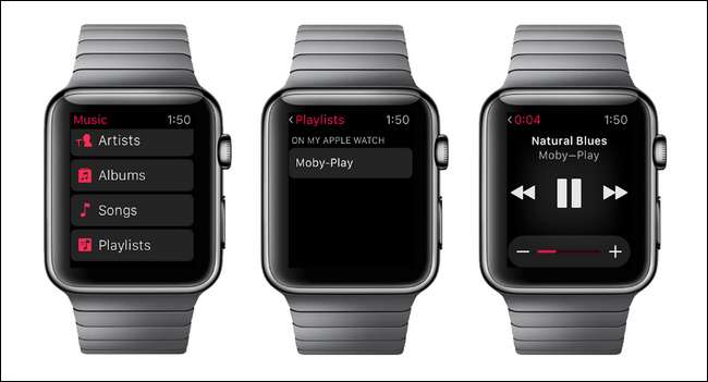 En este punto, la música está en el Apple Watch y el iPhone ya no es necesario a menos que desee actualizar la lista de reproducción o reemplazarla por una nueva.