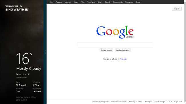 Chrome también es compatible con la función de instantánea de Metro, por lo que puede usarla junto con otra aplicación de Metro.