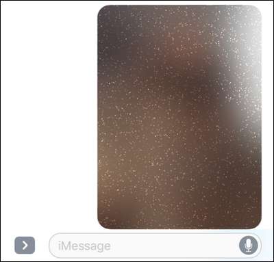 La tinta invisible, sin embargo, es nuestro efecto burbuja favorito. Si alguna vez ha querido enviar un mensaje o una foto a alguien y que solo sea visible para ellos si se toman el tiempo para revelarlo (como oponerse a abrir iMessage en la mesa de conferencias en el trabajo y revelar accidentalmente un mensaje o una foto inapropiados) , este es el efecto especial para ti. Aquí puede ver una imagen cubierta con el efecto de tinta invisible.