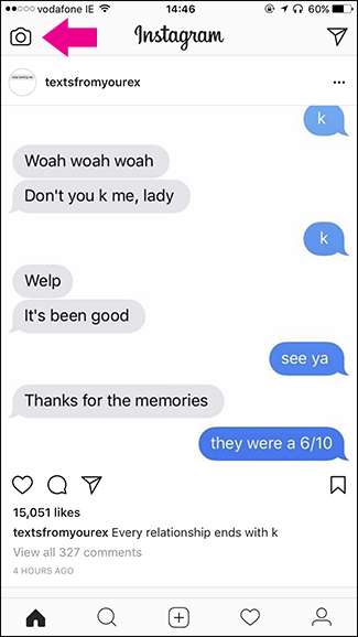 Abra Instagram y deslice hacia la derecha (o toque el pequeño icono de la cámara) para acceder a la pantalla de la cámara.