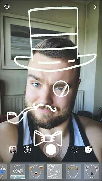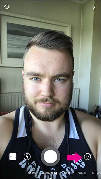 Toque el icono de cara pequeña a la derecha para que aparezcan los filtros de caras.