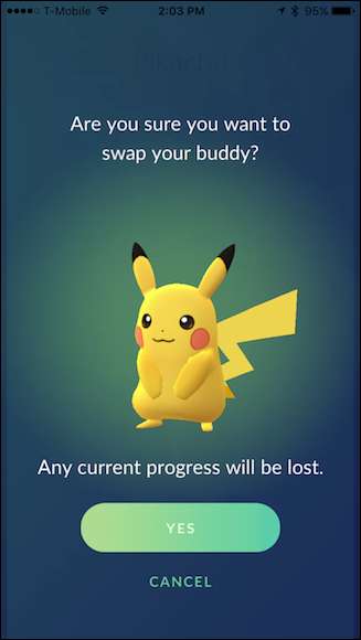 Cuando toques el botón Buddy, podrás elegir cualquier Pokémon de tu Poké-inventario.
