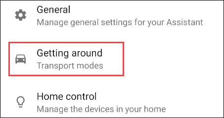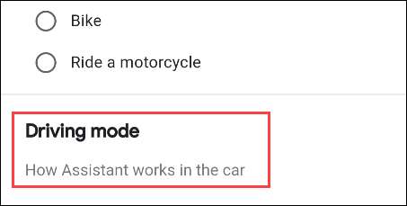 Aquí es donde usted puede decir Google Asistente su método preferido de transporte. Seleccione “Modo de conducción” en la parte inferior.