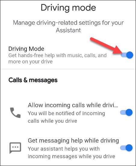 Ahora, asegúrese de que el “Modo de conducción” se alterna sucesivamente. También puede permitir o denegar las llamadas y los mensajes entrantes mientras se conduce.