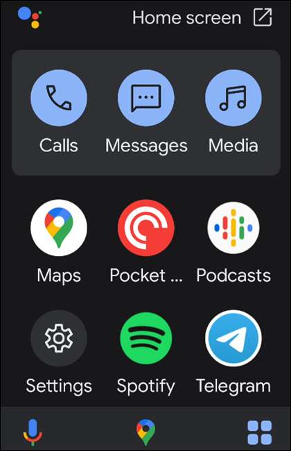 Ahora vamos a estar en el modo de conducción. También hay una barra de herramientas en la parte inferior con acceso rápido a Google Auxiliar y Aplicaciones. Toque el icono de cuadrícula para abrir el menú de aplicaciones.