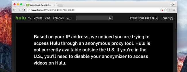 Si aún no te has puesto al día: muchas personas eluden las restricciones regionales, p. Ej. "Este programa no está disponible en su país" - mediante el uso de VPN y servicios proxy. Estos servicios de proxy y VPN enrutan su tráfico a través de otro país (por ejemplo, EE. UU., Donde se muestra es disponible) por lo que Netflix y Hulu creen que vives allí. Estas VPN y proxies utilizan un puñado de direcciones IP y las comparten entre sus usuarios.
