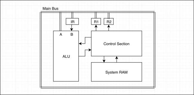 Para realizar un cálculo, los datos del programa se cargan desde la RAM del sistema a la sección de control. La sección de control lee dos números de la RAM, carga el primero en el registro de instrucciones de la ALU y luego carga el segundo en el bus. Mientras tanto, envía a la ALU un código de instrucción indicándole qué hacer. Luego, la ALU realiza todos los cálculos y almacena el resultado en un registro diferente, que la CPU puede leer y luego continuar con el proceso.