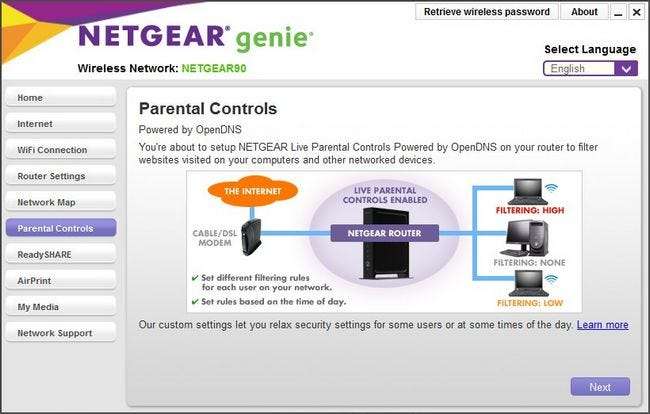 Los controles parentales en muchos enrutadores y computadoras / dispositivos tienden a ser realmente torpes y mal implementados. Netgear hace las cosas de una manera muy práctica al vincular el filtrado de contenido proporcionado por OpenDNS (un servicio de DNS gratuito) con el enrutador y ofrecer un control granular dispositivo por dispositivo sobre la implementación.