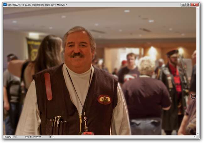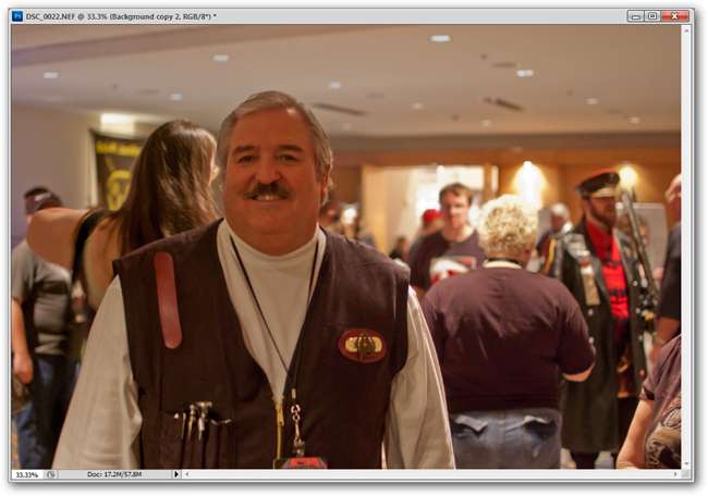 A veces, obtienes una toma que no funciona tan bien como te gustaría. Cuando se tomó esta foto de ejemplo, el sujeto salió genial ( si no entiende por qué, sabe incluso menos que su autor sobre Star Trek ), pero el fondo no aportó nada a la toma, y era demasiado tarde para volver atrás y volver a tomar la imagen con un teleobjetivo para obtener un fondo agradable y suave. Así que quitaremos la nitidez de algunas partes de ese fondo y lo silenciaremos con un simple Photoshop. Si eres fanático de GIMP, no dudes en seguirlo. Todas las herramientas utilizadas aquí tienen contrapartes de GIMP.