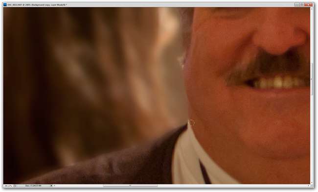 Pero el diablo está en los detalles, así que hacemos zoom para blanquear las partes de nuestra máscara alrededor de los bordes que no se ven muy bien en una inspección de cerca.