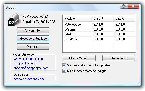 Otra utilidad para controlar su Yahoo y otras cuentas de correo web es POP mirón . POP Peeper funciona con POP3, IMAP (incluidos GMail, AOL, AIM, Netscape, FastMail), SMTP, GMail, HotmailMSNLiveMail, Yahoo, Mail.com, MyWay, Excite, Lycos.com, RediffMail, Juno y NetZero.
