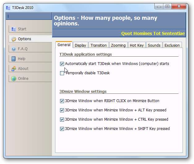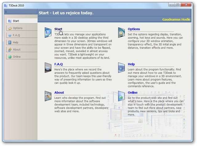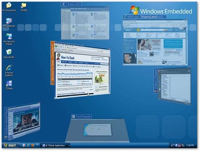 T3 Desk es una forma divertida e interesante de administrar múltiples aplicaciones en su pantalla. También es más que un atractivo visual, ya que en realidad puede ser funcional para aumentar fácilmente la productividad. Se ejecutará en XP, Vista y Windows 7 y consume pocos recursos del sistema. Si está molesto con Aero Flip 3D o está buscando un reemplazo de Alt + Tab, vale la pena probar T3 Desk.