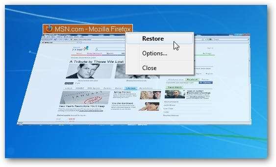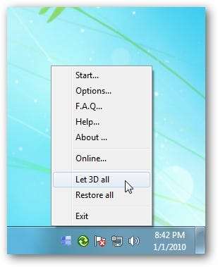 Haga clic con el botón derecho en el icono de la barra de tareas para acceder a un menú para restaurar todos a su estado 2D o convertirlos en 3D y acceder a otros elementos.
