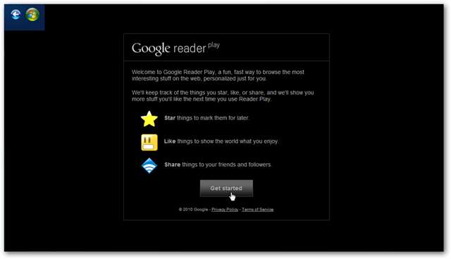 Si aún no ha probado Google Reader Play, diríjase al sitio web (enlace a continuación) ... inicie sesión y haga clic en Comenzar.