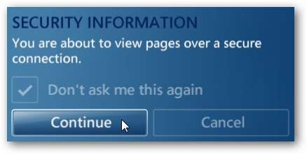 Aparecerá un mensaje sobre cómo ver la página a través de una conexión segura. Cheque No me vuelvas a preguntar esto y haga clic en Continuar.