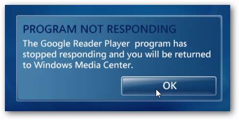 Si bien Google Reader Play es lo suficientemente bueno por sí solo, queremos agregarlo a Windows 7 Media Center. Podemos hacer esto instalando el complemento GoogleReader MCE. Descargue el archivo, asegúrese de haber cerrado WMC e instálelo normalmente aceptando los valores predeterminados.