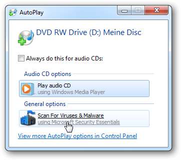 Puede usar esto para escanear cualquier medio extraíble. A continuación se muestra un ejemplo de la capacidad de escanear un DVD con MSE antes de abrir cualquier archivo.