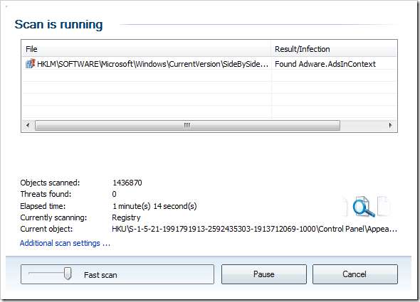 Los análisis completos del sistema parecen comparables a los de Avast y AntiVir y también puede controlar la velocidad ... cuanto más rápido es el análisis, más potencia de procesamiento de la CPU se requiere si desea seguir usando la computadora mientras se ejecuta el análisis.