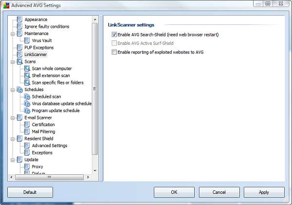 Hay una sorprendente cantidad de configuraciones y opciones para personalizar el funcionamiento de AVG. Aquí es donde controlar los programas de análisis y una gran cantidad de otras opciones.