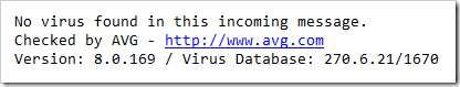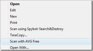 Todos los mensajes de correo electrónico serán escaneados y esto será verificado por un mensaje en la parte inferior de cada correo electrónico. Además, al igual que con las otras aplicaciones antivirus que hemos cubierto, AVG se integra en el Explorador de Windows para que pueda escanear archivos individuales haciendo clic derecho.